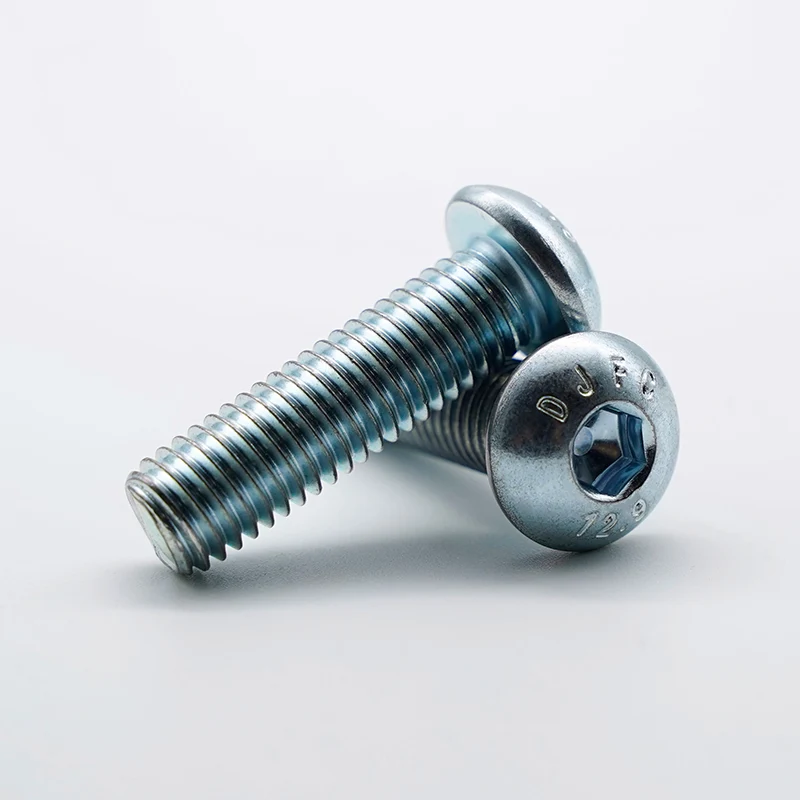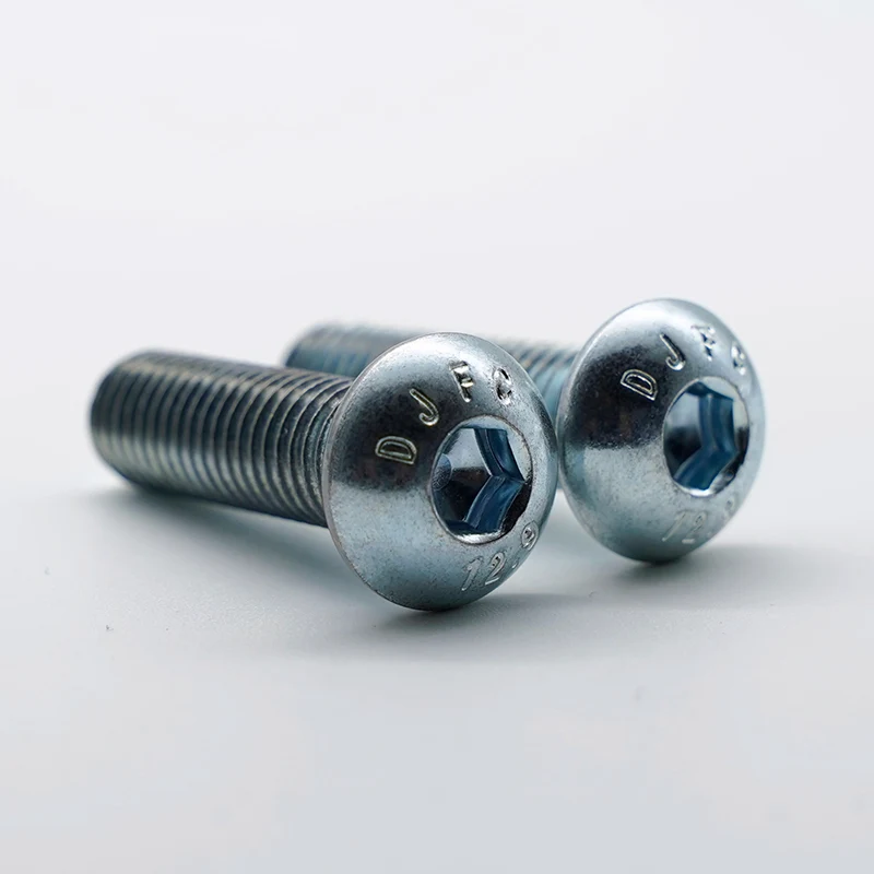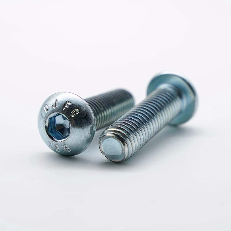 Процесът на електропоцинковане, използван за поцинковани винтове с вътрешен шестограм, е за прецизен контрол на отлагането на цинковия слой чрез електрически ток при ниска температура, за да се осигури равномерно покритие и гладка повърхност. Има минимален ефект върху механичните свойства на субстрата с висока якост от клас 12.9, като ефективно избягва риска от водородна крехкост. Не променя размера на детайла и е особено подходящ за прецизно сглобяване и последващо боядисване. В сравнение с горещо поцинковане, електропоцинковането има по-деликатен външен вид, по-прецизен контрол на размерите и е по-подходящо за индустриални стандартни части. Степен 12.9 представлява клас с ултрависока якост и неговата крайна якост на опън и граница на провлачване далеч надхвърлят тези на обикновените винтове от въглеродна стомана или неръждаема стомана. В същото време той дава на винтовете отлична устойчивост на опън, срязване и умора и е особено подходящ за тежки условия на работа с големи натоварвания, ударни натоварвания или продължителни вибрации. Той има значителни предимства в приложения, които изискват високо предварително натоварване, за да се гарантира надеждност на връзката.