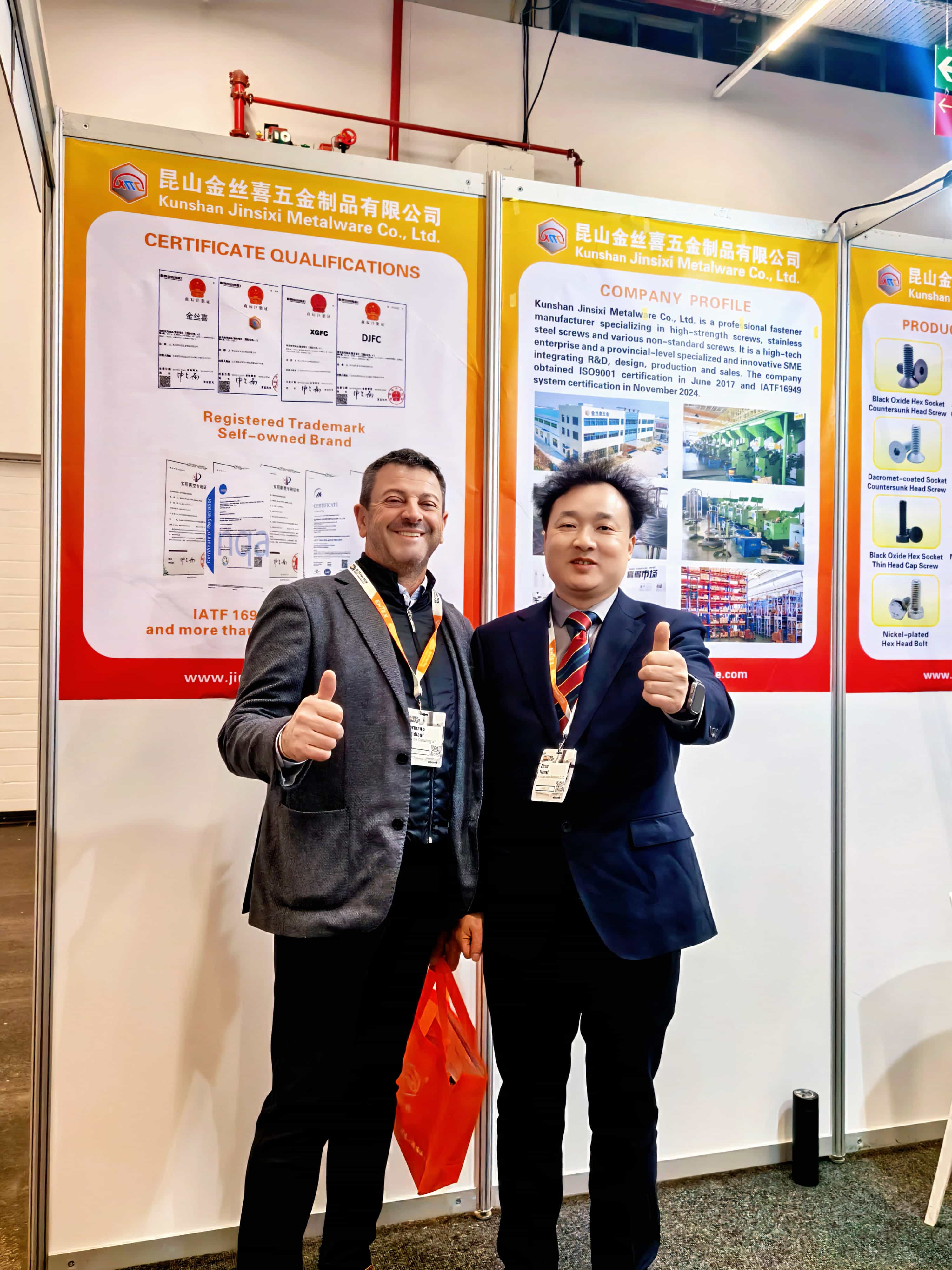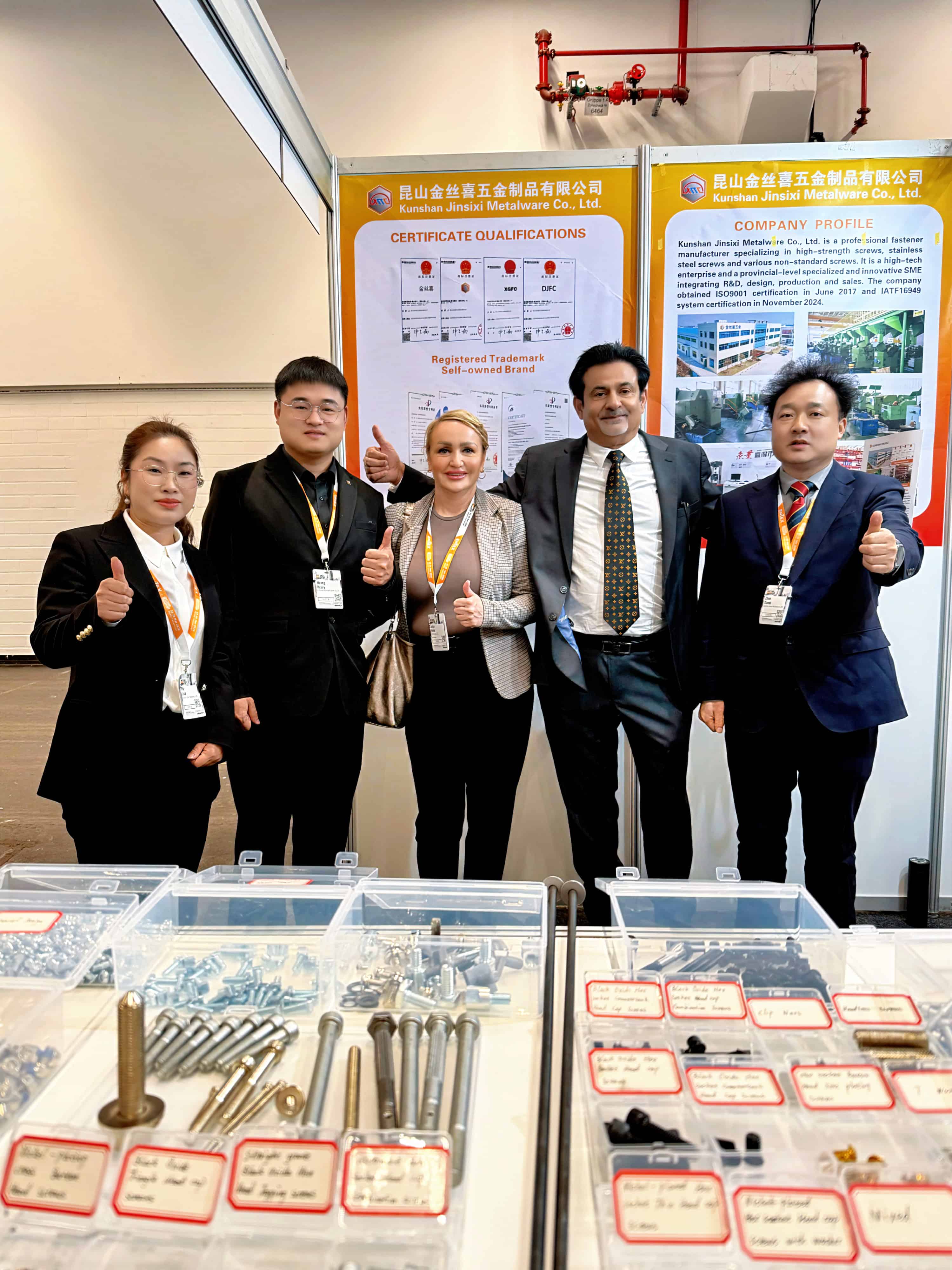 За да демонстрира напълно своите всеобхватни силни страни,Джинсисисъздаде внимателно проектиран щанд, подчертавайки неговата гама отшестоъгълна муфаишестоъгълна главапродукти, включващи различни процеси на повърхностна обработка, като черен оксид, никелирани, поцинковани и покрити с Dacromet. Тези продукти отговарят на основните стандарти, включително GB, DIN, ANSI, JIS и ISO, и са изработени от материали като неръждаема стомана, средно въглеродна стомана и легирана стомана. Всички продукти стриктно се придържат към системите за управление на качеството ISO 9001 и IATF 16949, като гарантират, че всеки винт и болт осигурява надеждна и стабилна механична работа.